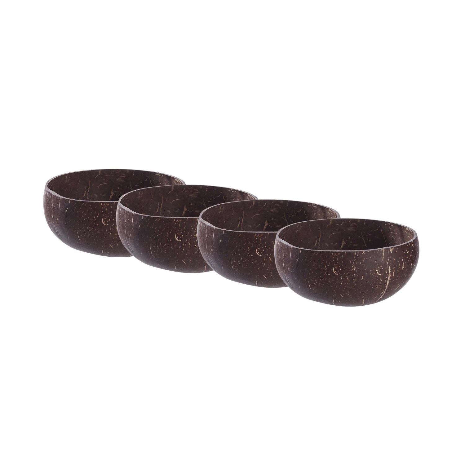 Coconut Kokosnussschale 430 ml im 4er-Set. Ja, diese Schale besteht aus echter Kokosnuss, das ist sehr robust und macht jedes Teil zu einem Unikat. Als naturverbundener Allrounder ist sie perfekt zum Servieren Ihrer Lieblings-Bowl oder den kleinen Snacks am Abend. Passende Coconut Kokosnusslöffel erhältlich.