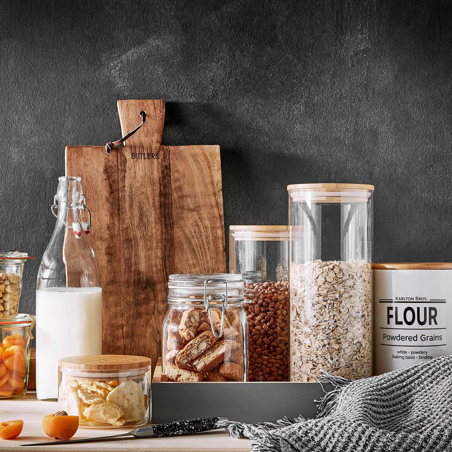 Das moderne Woodlock Vorratsglas 2300 ml im 4er-Set mit Bambus-Deckel setzt auf hochwertiges Borosilikatglas, das auch im Labor für seine unempfindliche Art gegenüber Temperaturschwankungen und chemische Einflüsse geschätzt wird. Sogar in der Raumfahrt hat sich dieser Werkstoff bewährt, so dass Sie ihm Zucker, Mehl & Co. bedenkenlos anvertrauen können. Verschiedene Größen erhältlich.