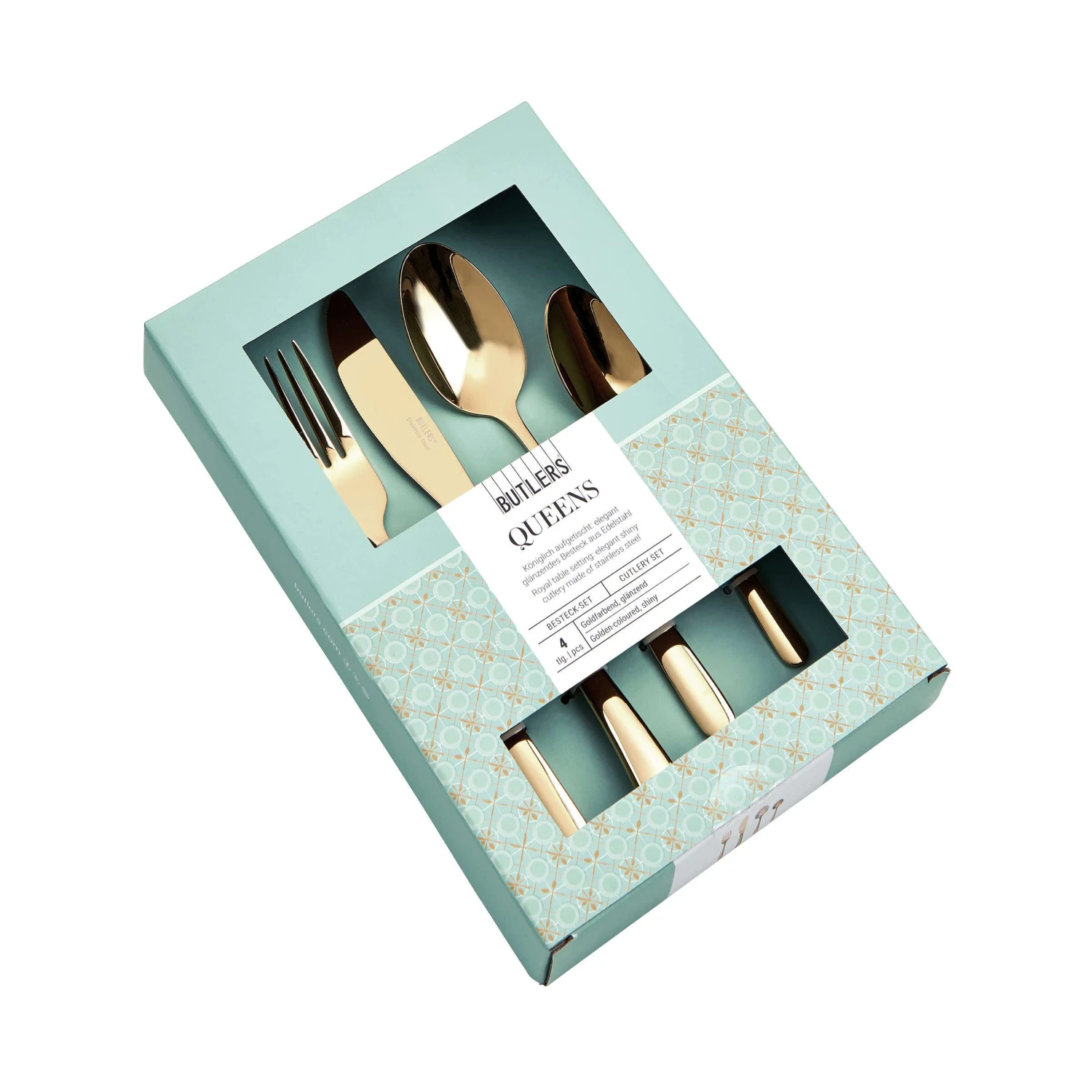 Jetzt wird’s luxuriös, denn das 16tlg. Queens Besteckset bringt majestätischen Charme auf Ihren Tisch. Ob romantisch, verspielt oder luxuriös – das hochwertige Besteckset aus Edelstahl beinhaltet alles was Sie für eine geschmackvoll eingedeckte Tafel brauchen und rundet jeden Stil königlich ab. Sowohl im Alltag als auch zu ganz besonderen Anlässen überzeugt das glänzende Essbesteck durch das schlichte Design und die eleganten Formen. Das exklusive Besteck ist auch in Gold, Schwarz oder Silber erhältlich.