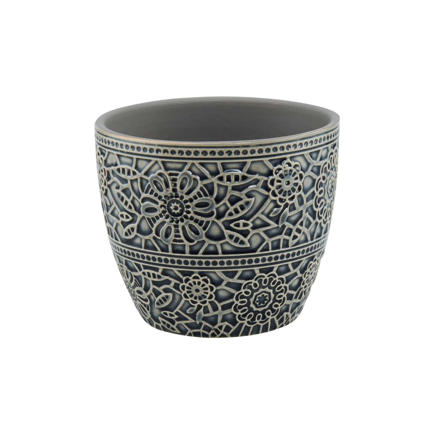 Einfach mustergültig: Der Ornament-geschmückte Bloomy Blumentopf 10,8 cm lässt das Kunststoff-Drumherum von Topfblumen dekorativ verschwinden. Aus Steingut. In verschiedenen Größen und Farben erhältlich, ideal auch zum Kombinieren.