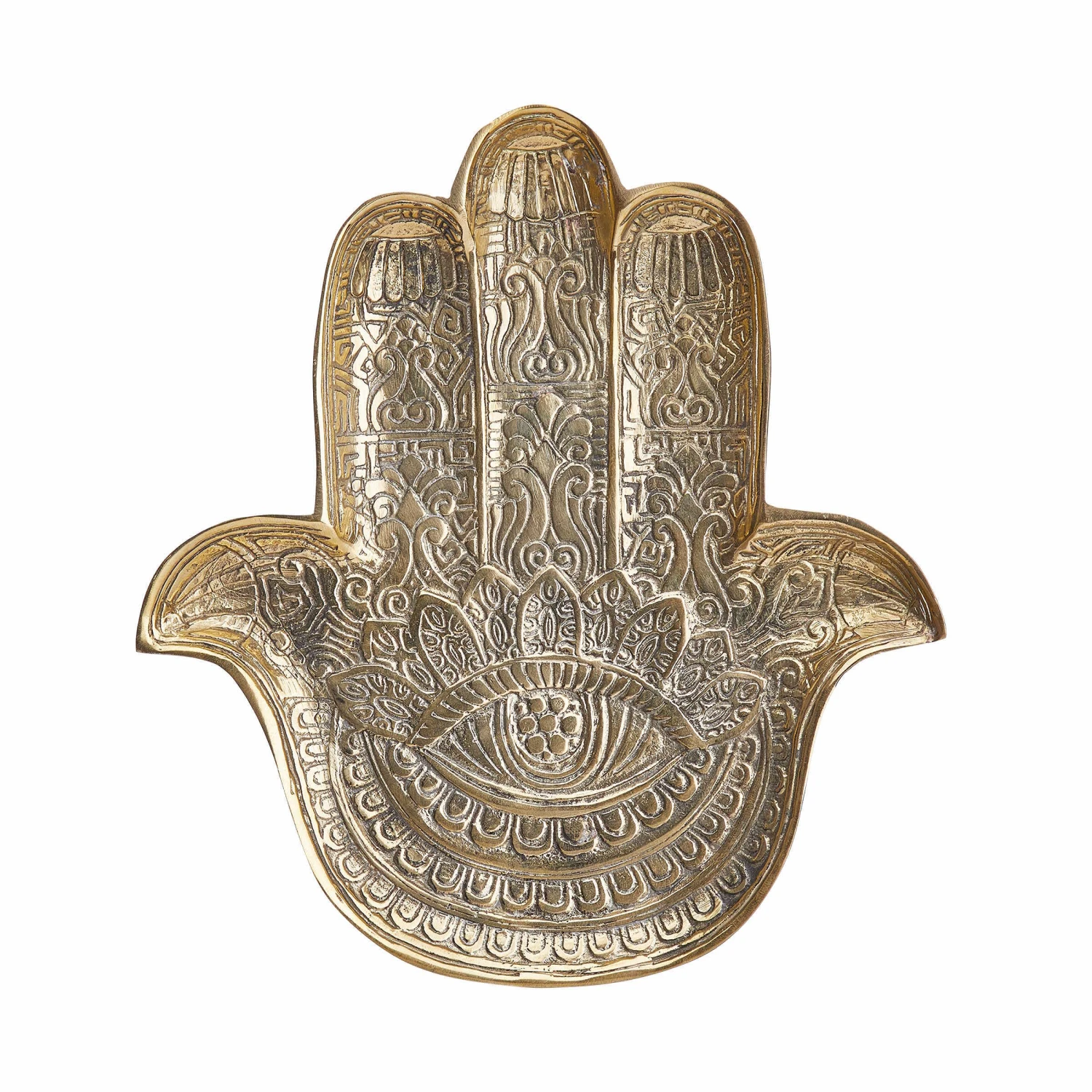 Deshalb beweisen Sie mit der hübschen Hamsa Deko Schale aus Aluminium in Gold