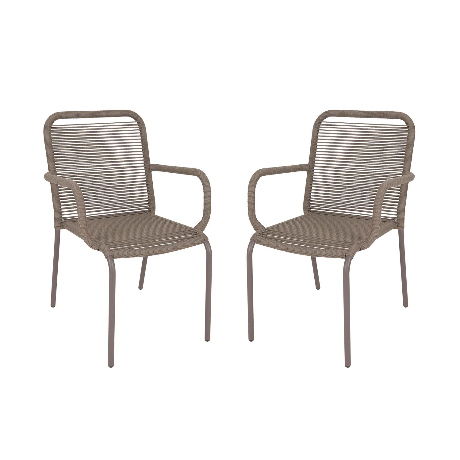 Ein Stapelstuhl für Balkon und Terrasse mit extra viel Sitzkomfort: Der praktische Loops Gartenstuhl im 2er-Set mit Armlehnen ist im Sitz- und Rückenbereich ganz in Strickkordel-Optik bespannt. Dieses moderne Material sieht lässig aus, ist zudem leicht elastisch und passt sich so der Körperform an. Da dürfen Feste oder Frühstücke im Freien auch gerne mal etwas länger dauern.