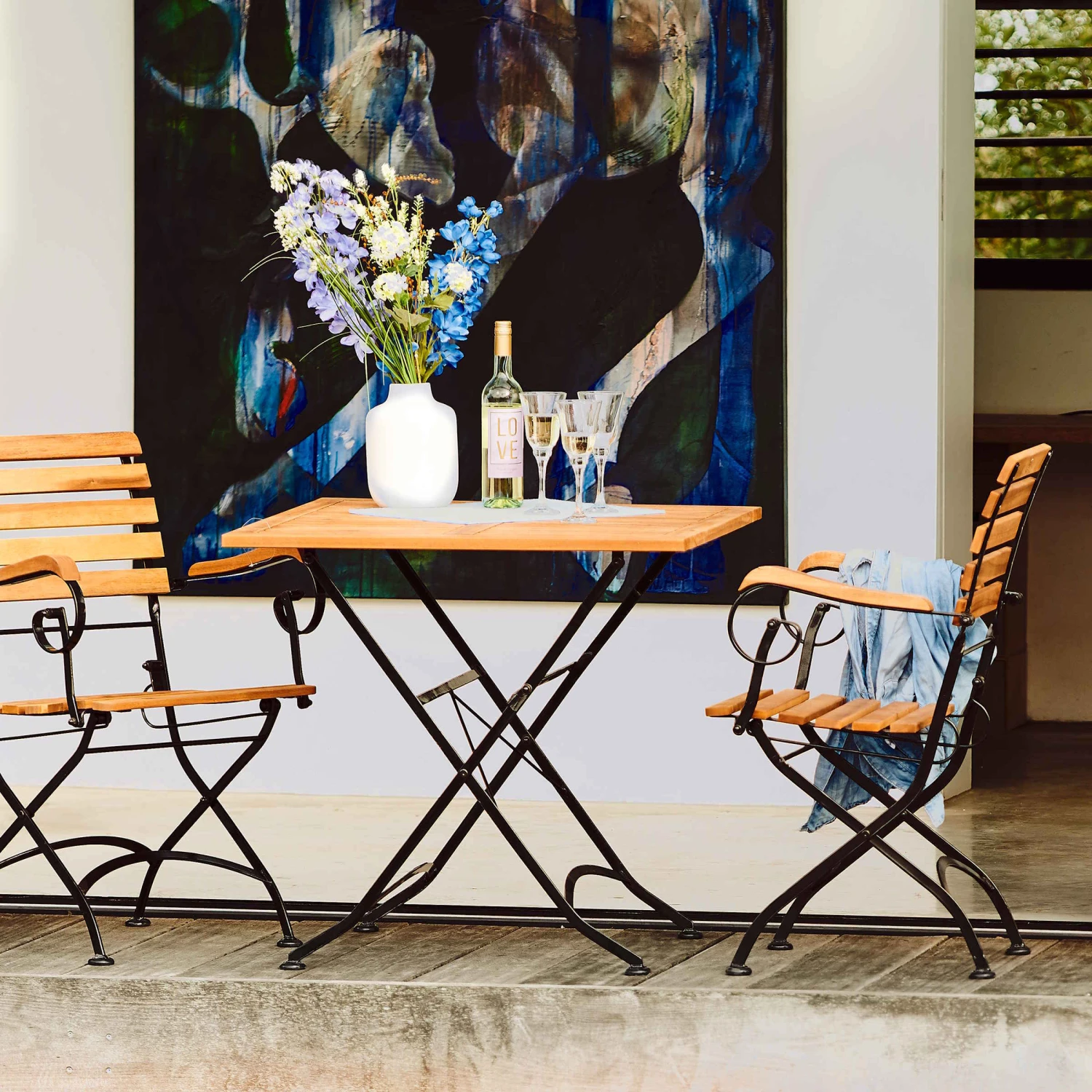 Flexible Gartenmöbel wie der klappbare Parklife Gartentisch aus Holz und Metall für 2 Personen sind einfach unschlagbar. Wenn Sie morgens und nachmittags in der Sonne sitzen wollen. Wenn Sie zwischendurch Platz für eine Partie Croquet brauchen. Oder wenn Ihr Schuppen bzw. Ihre Garage kleiner ist als ein Flugzeughangar.