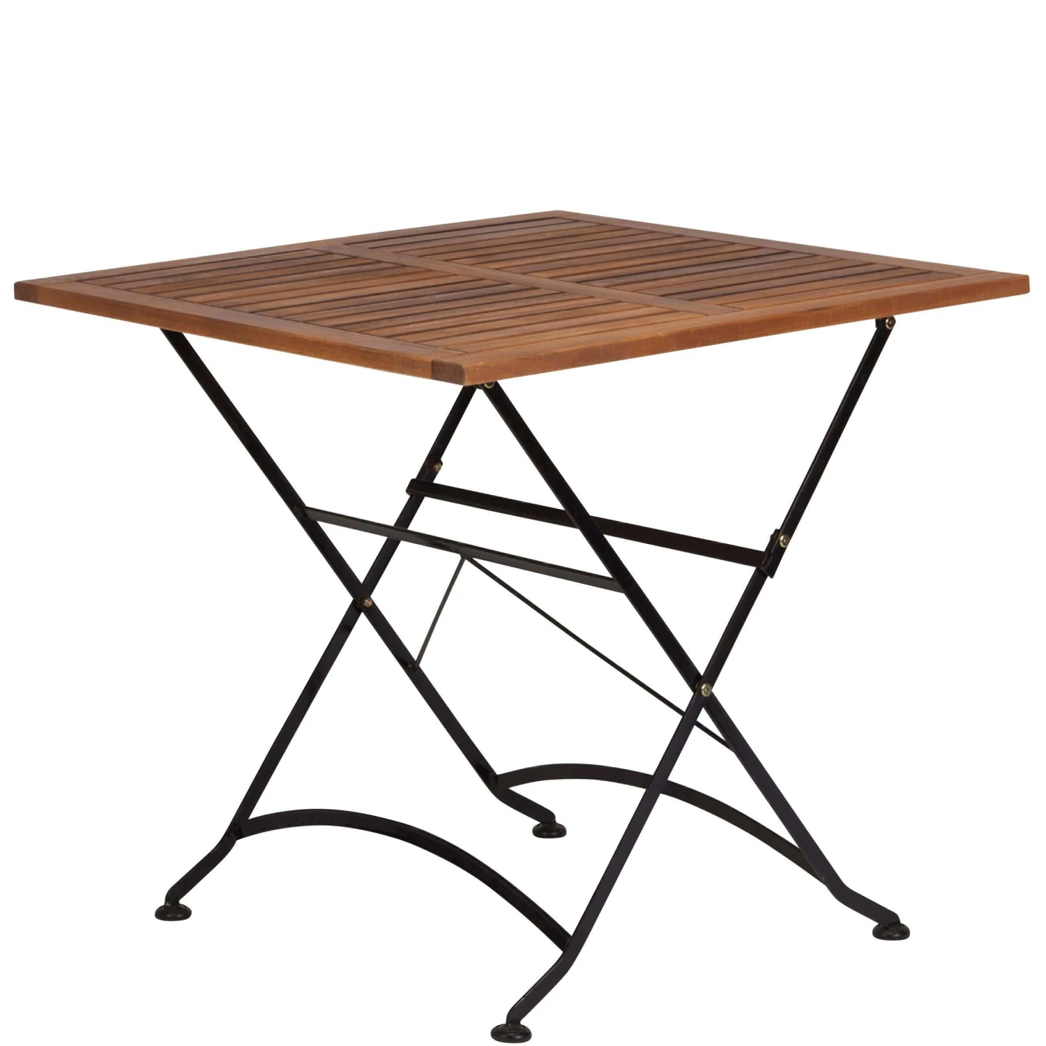 – Klapptisch 80 x 80 cm aus Akazienholz und Metall