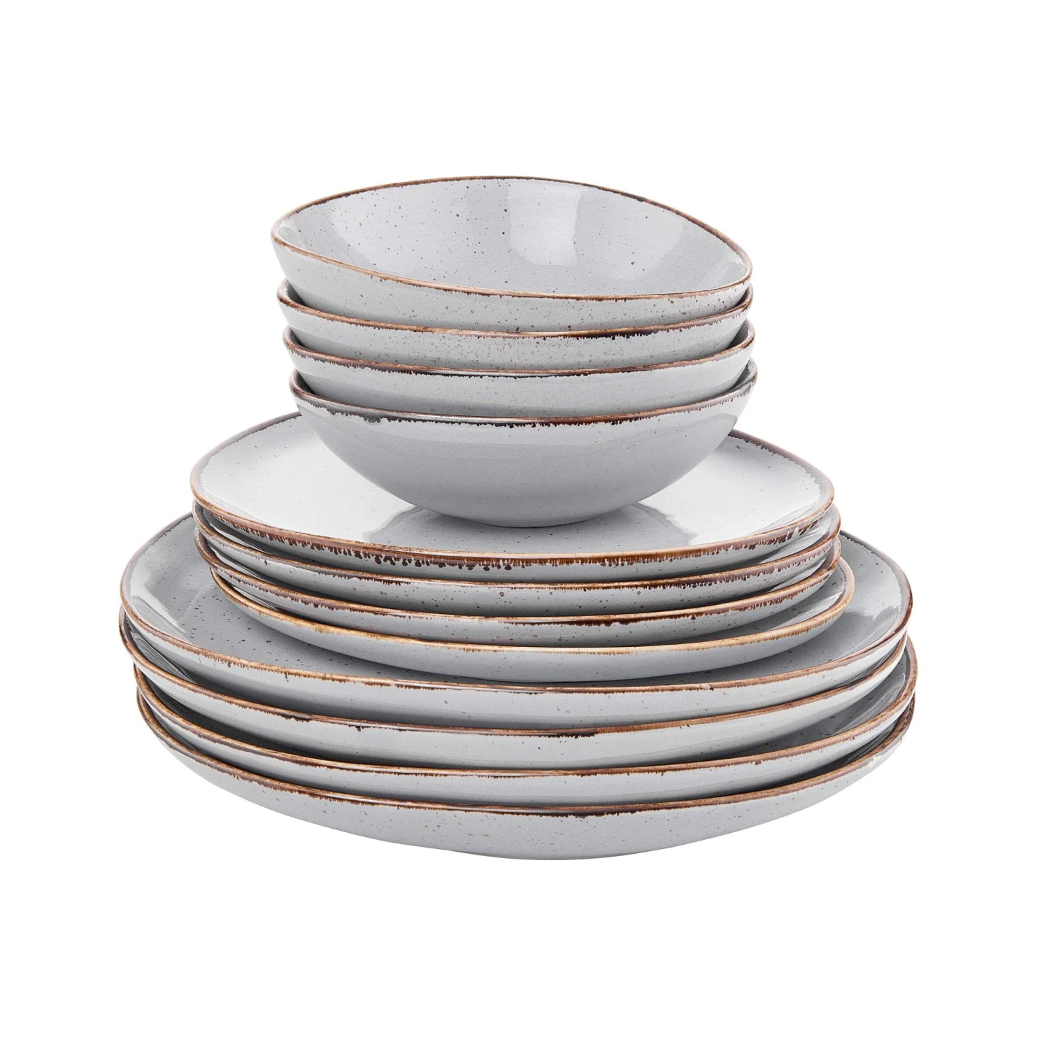 ¡que bonito! Der hochwertige Handmade Look des 12-teiligen Finca Geschirrsets aus Porzellan fällt sofort ins Auge. Kein Wunder: Die reaktive Glasur mit natürlichen Sprenkeln, die authentische Form und die Vintage Optik erinnern an echtes Handwerk, wie man es nur noch in alten Manufakturen findet. Damit ist Finca kein Geschirr „von der Stange“, sondern deckt Ihren Tisch mit individuellen Schmuck- und Sammlerstücken.