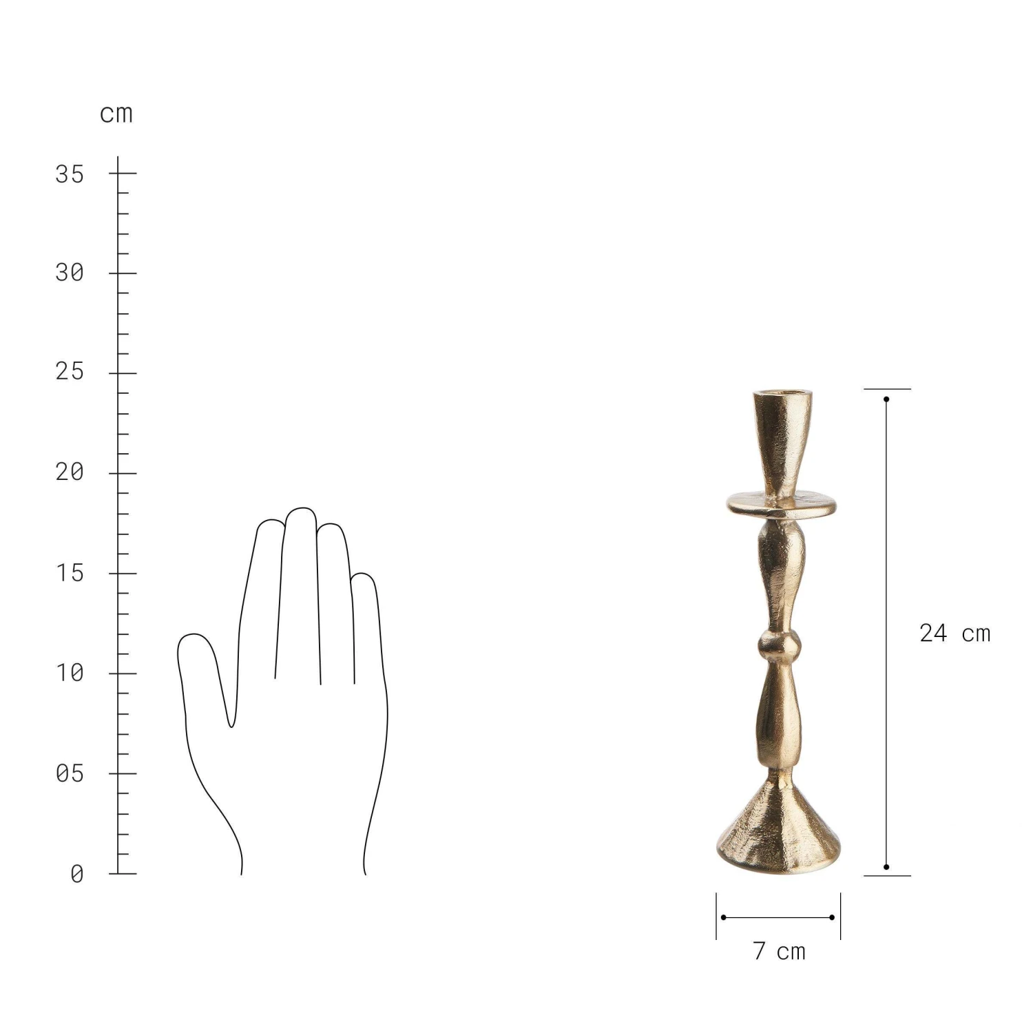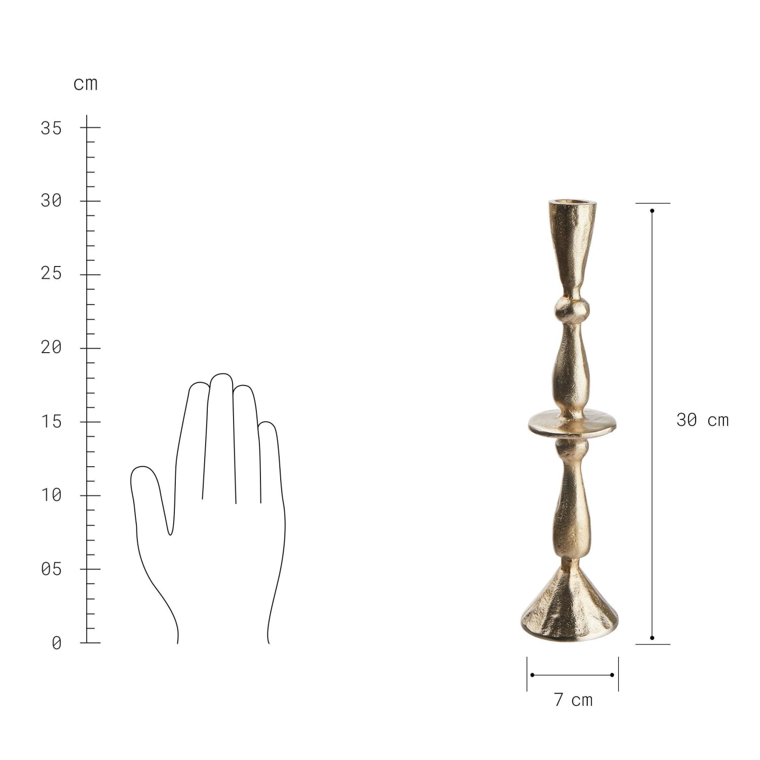 Was für ein Statement: Mit dem kunstvollen 2-teiligen Boho Love Kerzenhalter-Set aus goldfarbenem Aluminium ist Ihr Zuhause im angesagten Boho-Style um eine echte Sehenswürdigkeit reicher. Seine Oberfläche ist leicht uneben, und auch seine besondere Form wirkt wie von Hand gearbeitet. Dieses Design verfehlt auch auf dem opulent gedeckten Tisch seine Wirkung nicht.