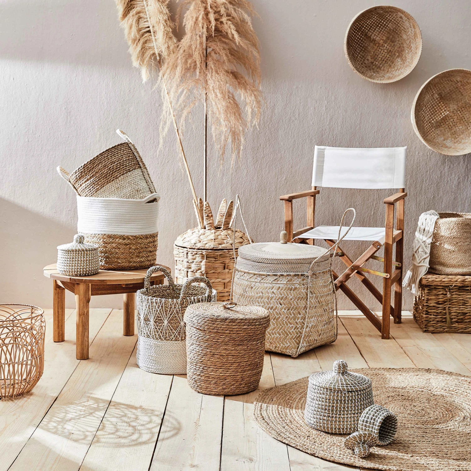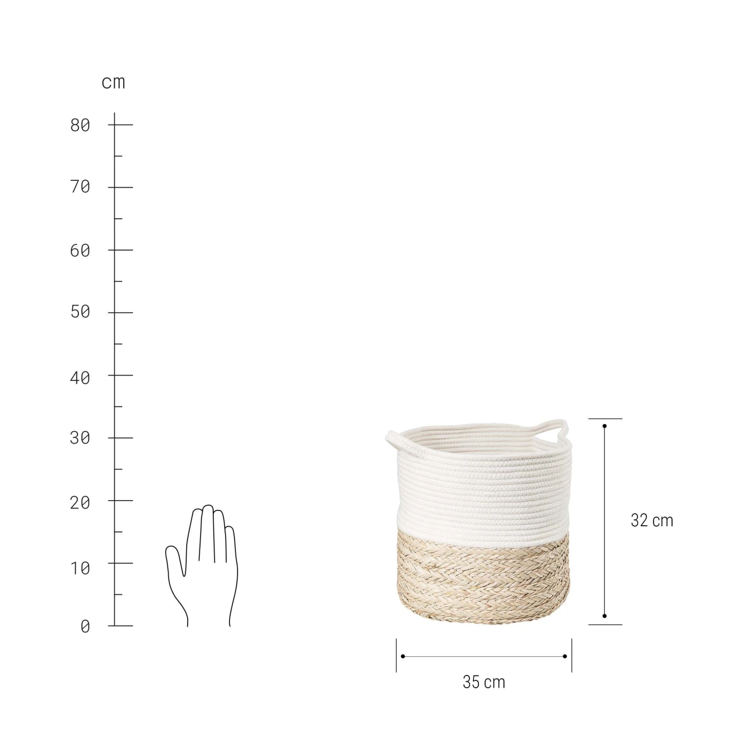 Oben weiß, unten natur – der Basic Braid Seegras-Korb 32 cm macht Ordnung halten, Sortieren, Verstauen und Aufbewahren noch viel schöner. Mit Griffen. Weitere Größen und Varianten erhältlich.