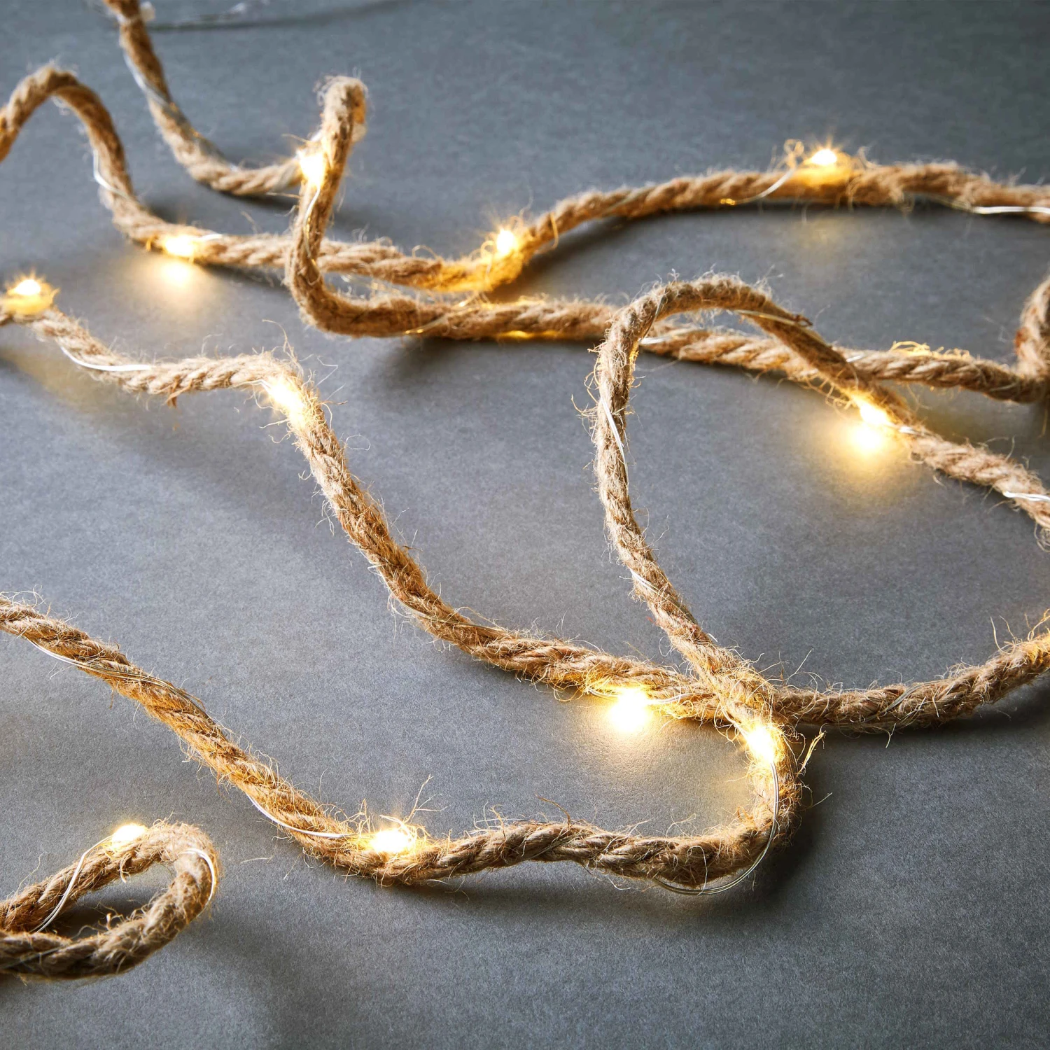 Unsere Lichterkette mit USB-Batteriefach aus der Farmhouse-Serie zaubert wunderschöne Momente in jedem Raum und verschönert Ihr Zuhause mit einzigartigen Lichteffekten. Somit sorgen Sie nicht nur für eine wohlige Wohnatmosphäre, sondern können auch einzelne Bilder oder Deko Elemente gekonnt in Szene setzen. Besonders ansprechend ist hier das Naturseil im rustikalen Look, welches durch die hellen, weißen LED-Lichter abgerundet wird und vielfältig genutzt werden kann.