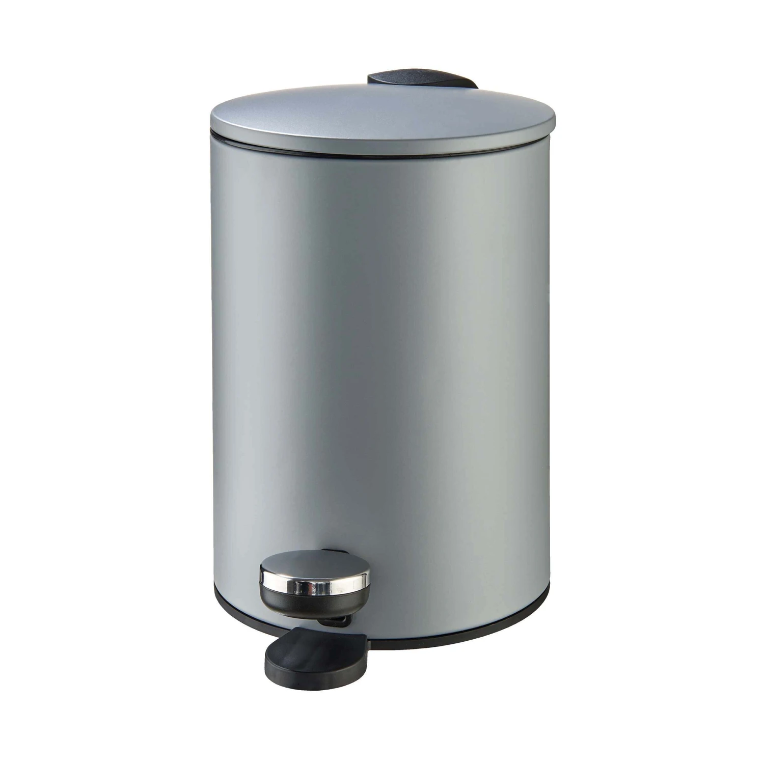 Der Treteimer hat eine schlichte zylinderartige Form, sodass er zu jedem Einrichtungsstil passt.