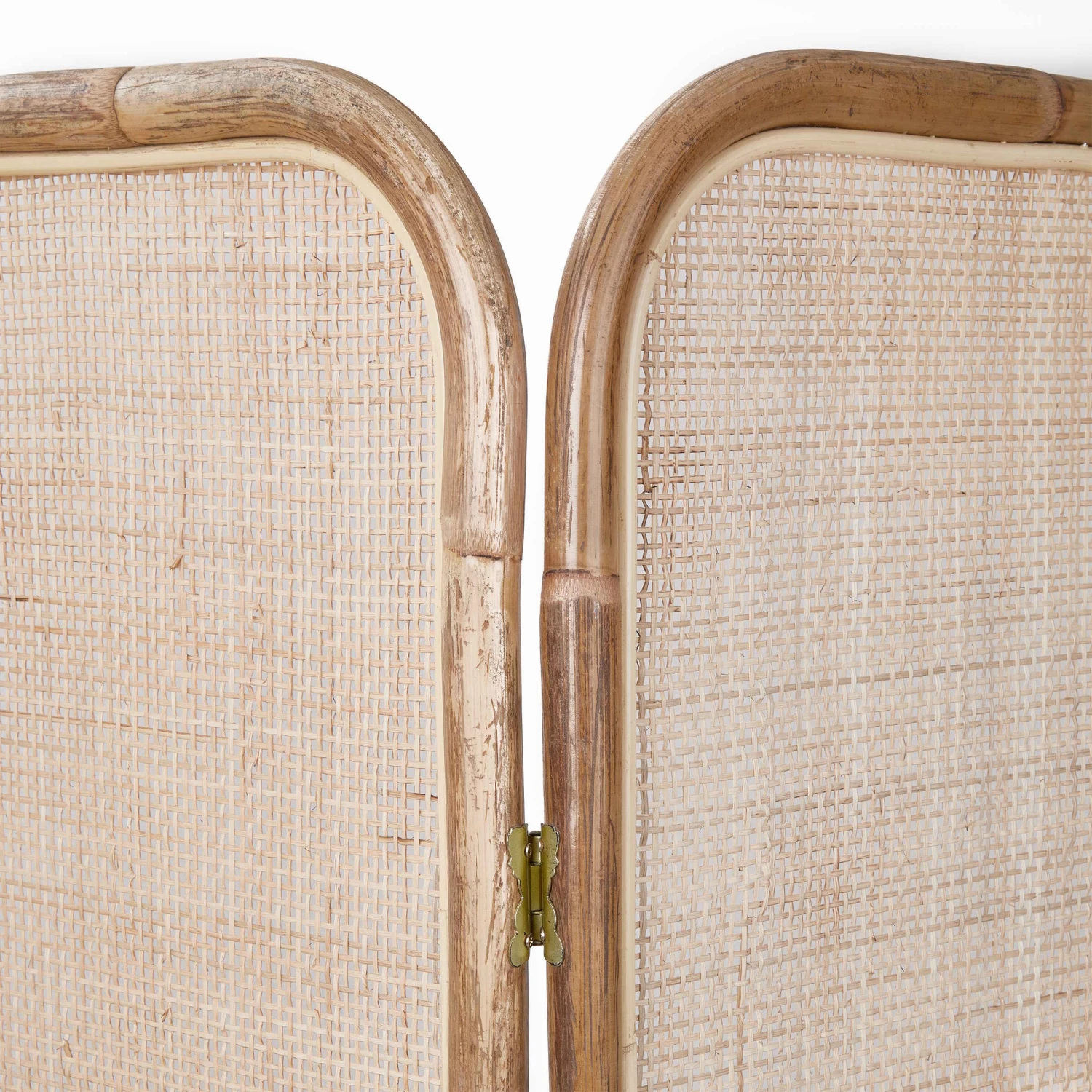 Räume unterteilen, Privatsphäre schaffen oder einen Blickfang setzen: Mit dem dreiflügeligen Boho Lounge Rattan-Paravent gelingt es Ihnen mit Leichtigkeit. Die geflochtenen, halbtransparenten Flächen schirmen Blicke und Licht ab, während die gerundeten Formen und dekorativen Scharniere als Hingucker wirken. Je nach Bedarf stellen Sie das Möbel flexibel mal hier, mal da auf oder klappen es platzsparend zusammen: Der dekorative Paravent ist einfach immer zur Stelle oder aus dem Weg.