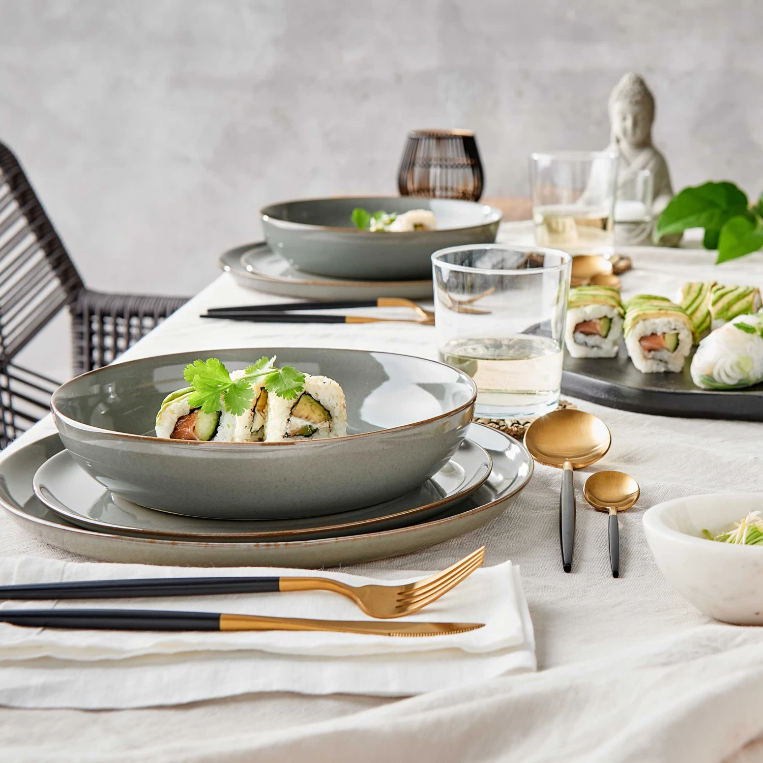 Mit unserer Geschirrserie Native im angesagten minimalistischen Design kommt der neue Trend auf den gedeckten Tisch! Der tiefe Teller aus Steinzeug ist handgefertigt in Portugal und hat eine dünne und hochwertige Scherbe mit einer klaren Formgebung. Durch die reaktive Glasur mit kleinen Kristalleinschlüssen wird jedes Teil der Serie zu einem echten Unikat. Der unglasierte Boden, der das Rohmaterial zum Vorschein bringt, sorgt für einen formvollendeten Manufaktur-Look. Jedes Teil der Serie ist spülmaschinen- und mikrowellengeeignet.
