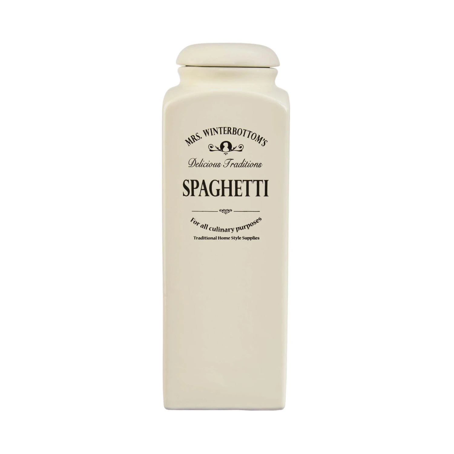 „Die dekorative Spaghettidose aus Steingut unserer Serie Mrs. Winterbottom’s kommt im hellen Landhausstil daher und bringt als praktischer Vorratsbehälter Ordnung mit System in ihre Küche.