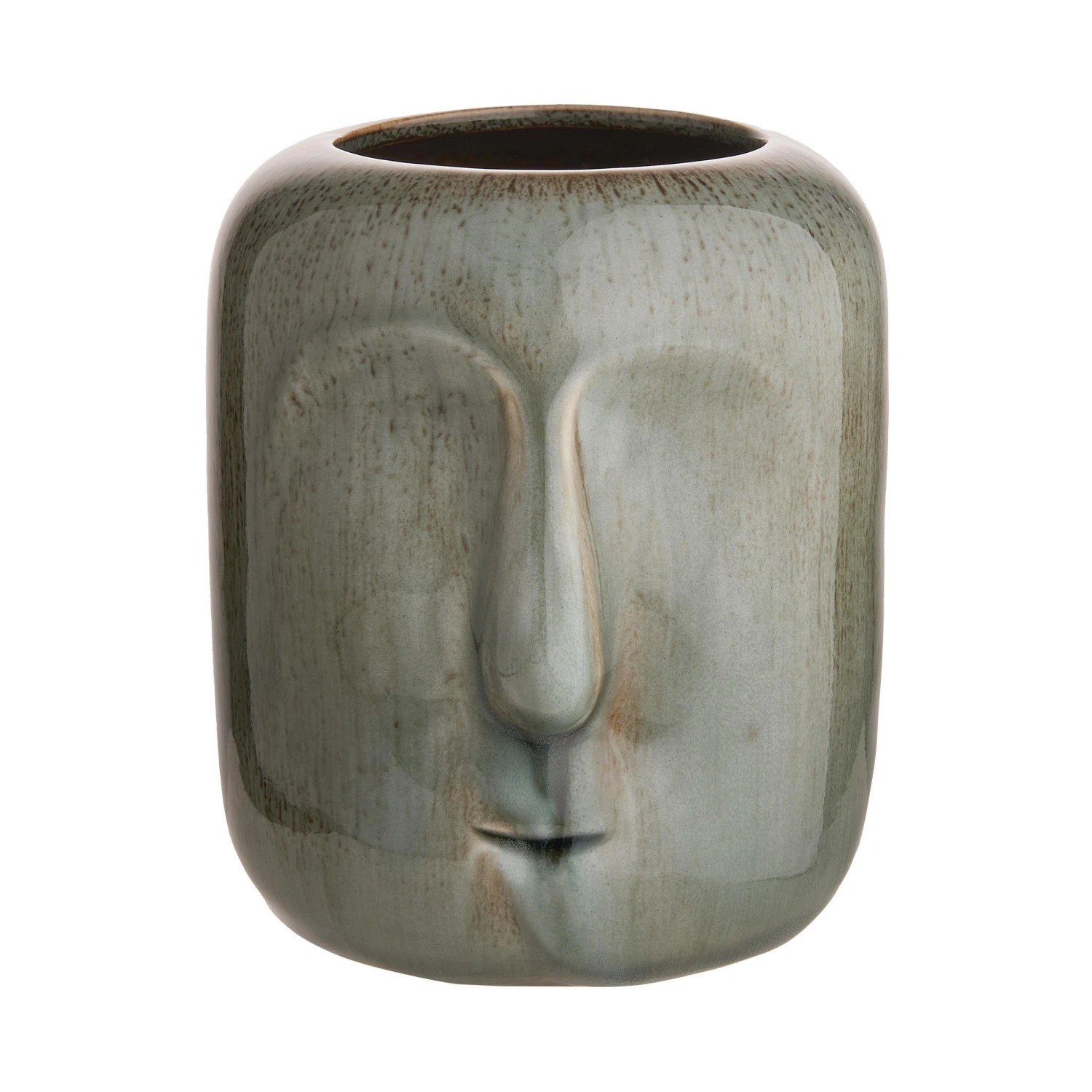 Die Deko-Vase ist nicht für Wasserblumen geeignet. Die Artist Vase mit Gesicht aus grünem Steinzeug sieht man in Glasur und Ausführung an, dass hier jemand mit Liebe und Erfahrung am Werk war. Genau das gibt dieser Vase ihren unverwechselbaren Ausdruck und macht sie zum Hingucker in Ihrem Zuhause.