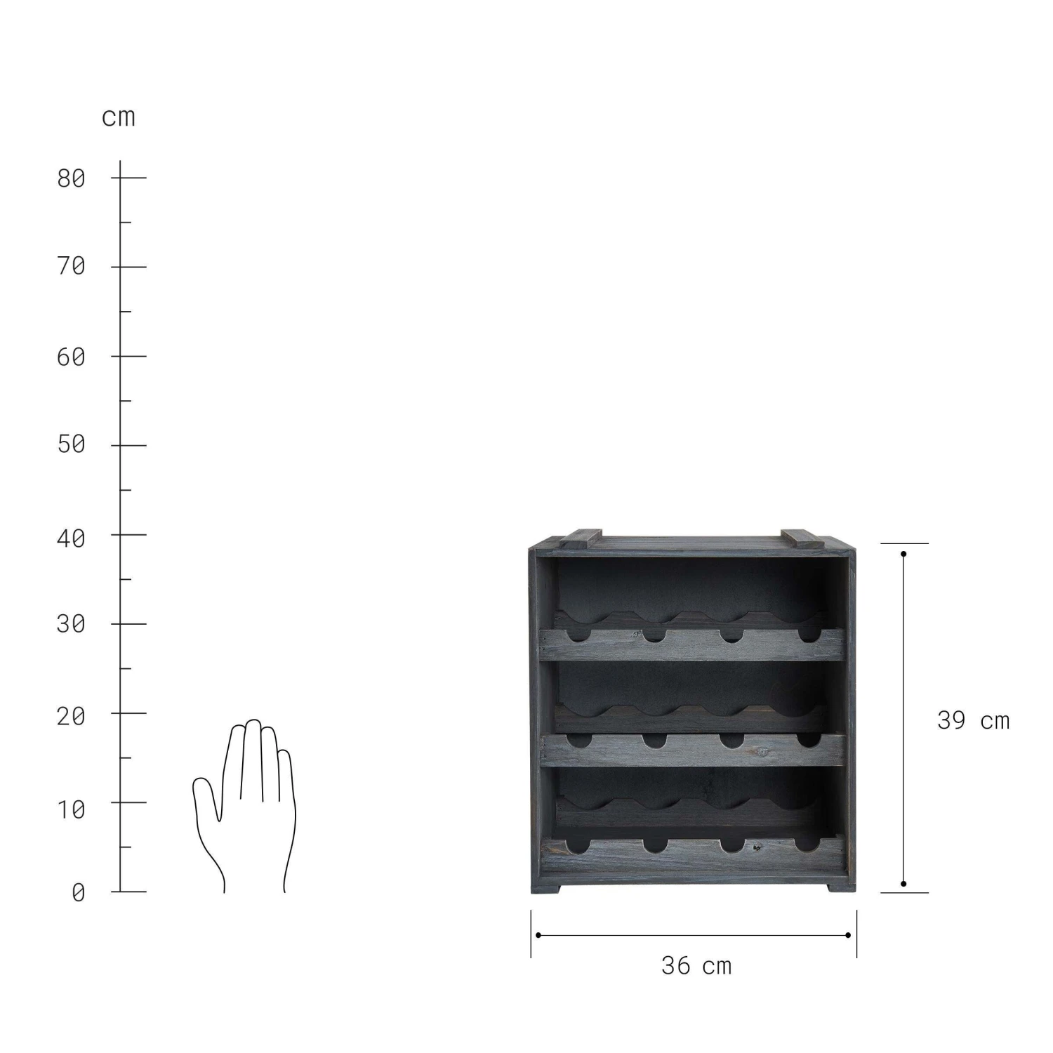 Bis zu 12 Weinflaschen finden Platz in unserem authentisch-rustikalen Vinothek-Weinregal. Dieses bietet reichlich Stauraum für Ihre Weinempfehlungen auf der nächsten Party oder dem Abend mit Freunden bei Ihnen Zuhause. Für noch mehr Platz lassen sich unsere Weinregale auch wunderbar miteinander kombinieren. Egal ob nebeneinander oder übereinander: Hier können Sie Ihre Lieblingsweinflaschen praktisch verstauen und setzen zudem modische Akzente in Ihrem Zuhause.