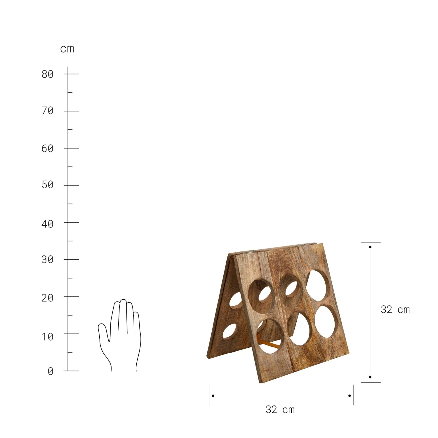 Wer braucht schon einen Weinkeller, wenn das Mango Days-Weinregal zum Aufstellen gleich sechs Weinflaschen für das Essen mit Freunden oder die nächste Party bereithält?! Einfach direkt und platzsparend in der Küche oder im Esszimmer aufstellen und Ihren Gästen unterschiedliche Weine servieren. So sparen Sie sich weite Wege und lästiges Kellertreppensteigen. Durch seine praktische Klappfunktion kann das Weinregal aus hochwertigem Mangoholz zudem jederzeit schnell verstaut werden. Ideal auch als Geschenk für Freunde guten Weins.